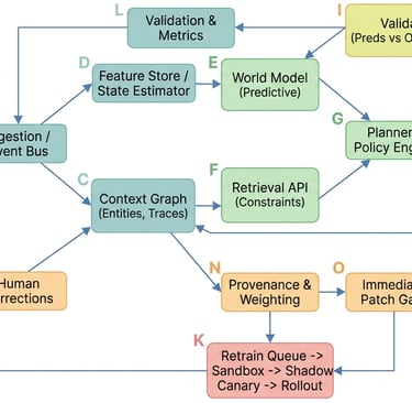 Modern research world models — projects such as Sora and Genie 3 — have pushed AI’s ability to imagine futures, run rich simulations, and propose remediation strategies. They expand what’s possible. But imagination without provenance is a liability in operations. A recommendation that cannot be tied back to the moment’s facts will be ignored or, worse, cause harm.
